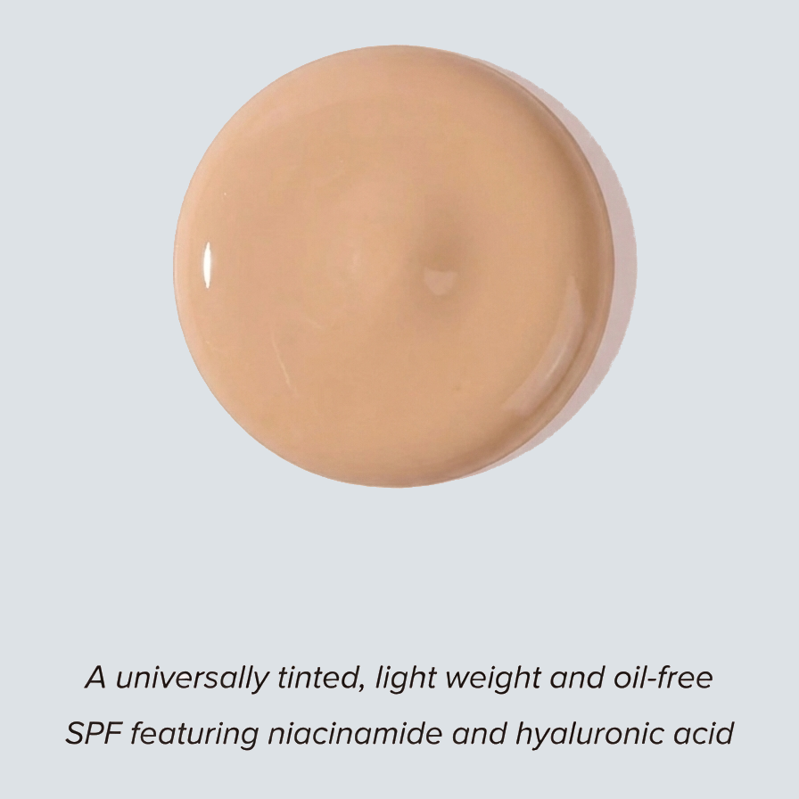 - Antioxidant-rich, fast-absorbing SPF, featuring a high level of Niacinamide and Hyaluronic Acid